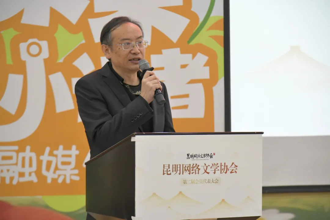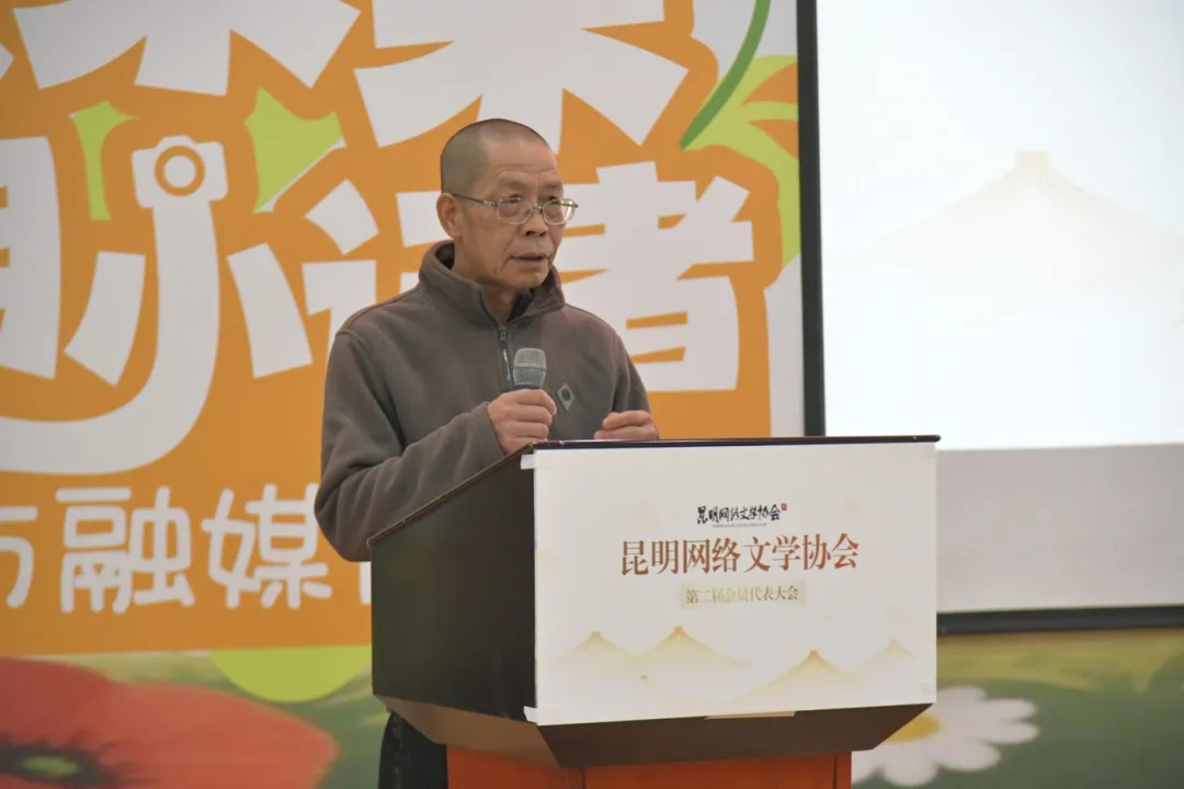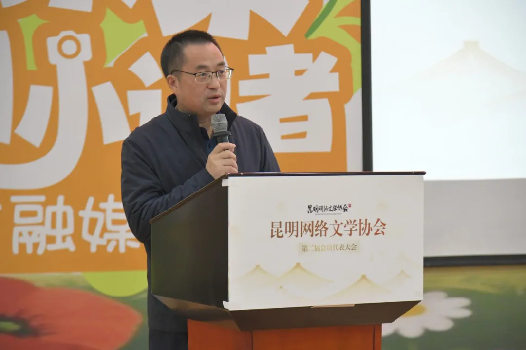昆明市文联党组成员、副主席郑朝灿在会上对昆明网络文学协会过去五年的工作和取得的成绩给予了充分肯定,并对协会今后的发展提出了要求。他强调,要用网络文学讲好春城故事;要以打造传世佳作为目标,让更多优秀作品从“线上”走向“线下”,从“作品”变成“产品”“品牌”;要加大青年作家、新文艺群体培育力度,常态化开展创作研讨、采风实践;要加强与影视、旅游行业联动,让IP 转化案例持续涌现;要加强与省内外及南亚东南亚文艺组织的交流,推动昆明网络文学“走出去”。