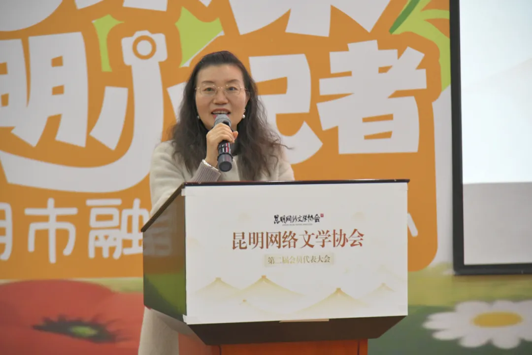 云南省作家协会文学创作一级、网络作家分会副主席兼秘书长和晓梅对本次会议的圆满召开,以及选举产生的新一届主席团和理事会表示祝贺。同时,她还对昆明网络文学协会的未来发展寄予希望。