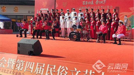 11月29日,云南路路通民俗用品批发市场2025年冬季订货会暨第四届民俗文艺大赛在昆明举行。活动组织近百支文艺队伍参赛展演,涵盖地方民歌、古老戏种、民间舞蹈、手工技艺等丰富多彩的内容。此次活动以民俗为桥,以文化为媒,集产品展销、文艺竞演与文化传承于一体,为初冬的春城带来一场热闹非凡的文化盛宴。