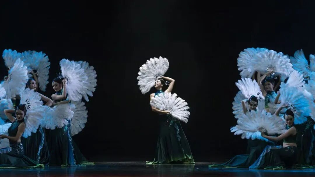 而在舞蹈《森灵》中,钱学涛与张蓓则展现了极致的舞台视觉思维与形式创新智慧。作品成功的关键在于实现了“道具、身体、光影”的三位一体。白色羽毛扇不仅是道具,更是身体的延伸,是孔雀意象的有机组成部分。手腕的“抖动”这一微观动作设计,精准捕捉并放大了鸟类羽翼颤动的生命细节,是舞蹈语言“拟态”的高级形态。同时,蓝绿色调的光影设计,并非简单写实还原森林,而是营造了一个抽象、空灵、神秘的“秘境”氛围,与白孔雀的“灵性”主题高度契合。独舞与群舞“个体即整体”的构思,打破了常规的主次关系,形成了富有哲学意味的“全息”式舞台镜像,使“森灵”既是一个具体的孔雀形象,更是弥漫于整个自然界的灵动生命能量的象征。