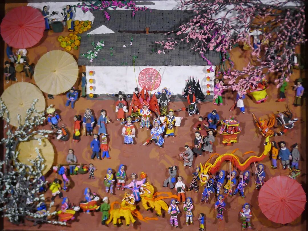 2007年起,王仲德带领合虚民族民间文化传习馆开启深耕传统、赋能创新之路。他提出“打造引领性作品”的理念,组织三十余位传承人共创十七米长的大型面塑,以指尖技艺讲述文化故事,成为国庆会展亮点,更让面塑艺人从街头摊贩成长为主题创作者;2013年推出的合虚七彩剪纸,以多层套色叠加技法打破传统剪纸的装饰局限,代表作《地出》一经亮相便轰动业内;烙画《大成昆明》以写意手法打造“水漫效果”,斩获茶花奖。这些创新实践既坚守了非遗精神内核,又通过艺术革新与市场赋能让传统手艺在当代焕发蓬勃生机。