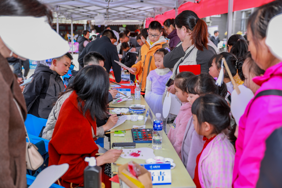活动同步展出少儿书画作品190余幅,累计送出拓印版画祝福卡200余个、国画扇子300余把,吸引数百名群众参与。此次三方联袂公益活动,是文艺惠民、传承民俗的生动实践,既增添了新春年味,又在孩子们心中播下文化传承种子,凝聚起共建美好家园的温情力量。
