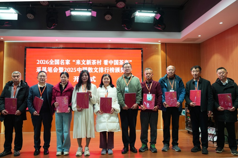 近日,由《海外文摘》《散文选刊·下旬刊》、信阳文新毛尖集团有限公司主办的“2025年中国散文排行榜”颁奖会在河南信阳举行。会上公布了2025年年度上榜的50篇优秀散文作品、散文集。中国作家协会副主席白庚胜出席并讲话,信阳文新毛尖集团董事长刘文新发言,作家蒋建伟、林东林、韩强毛等数十人参加了活动。
