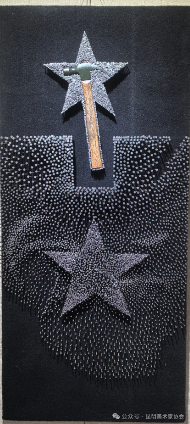 宋坚作为昆明美术家协会资深会员,长期深耕民族艺术与现代形式的融合实践,其作品以钉子这一工业材料为媒介,突破传统雕塑边界,在刚硬与柔软、机械与自然、传统与现代之间构建视觉与思想的桥梁。展览作品不仅展现材料的物理特质,更融入了对云南多民族文化精神的深层解读,体现出艺术家对当代艺术语言与本土文化传承的持续探索。