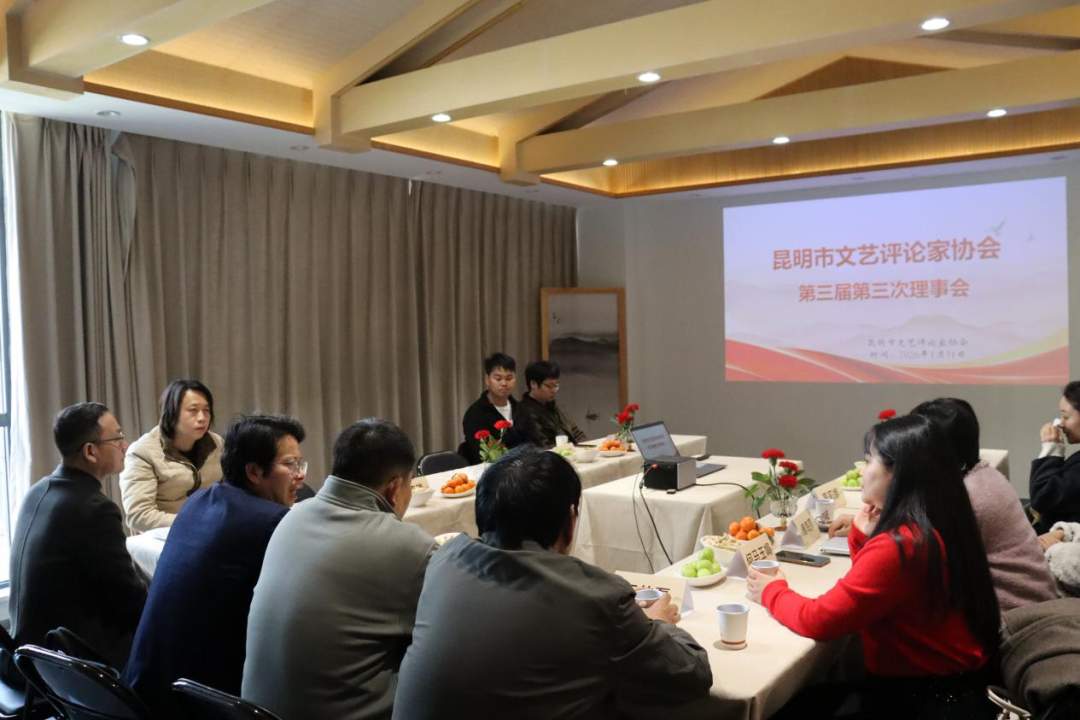 1月31日,昆明市文艺评论家协会第三届第三次理事会在昆明市五华区科普路华顺源茶文化馆召开。协会主席、云南大学马克思主义学院教授王海东主持会议,全体理事出席会议,监事及秘书处工作人员列席会议。会议紧扣新时代文艺评论工作使命,全面总结2025年工作成效,科学部署2026年重点任务,为推动昆明文艺评论事业高质量发展凝聚共识、明确方向。