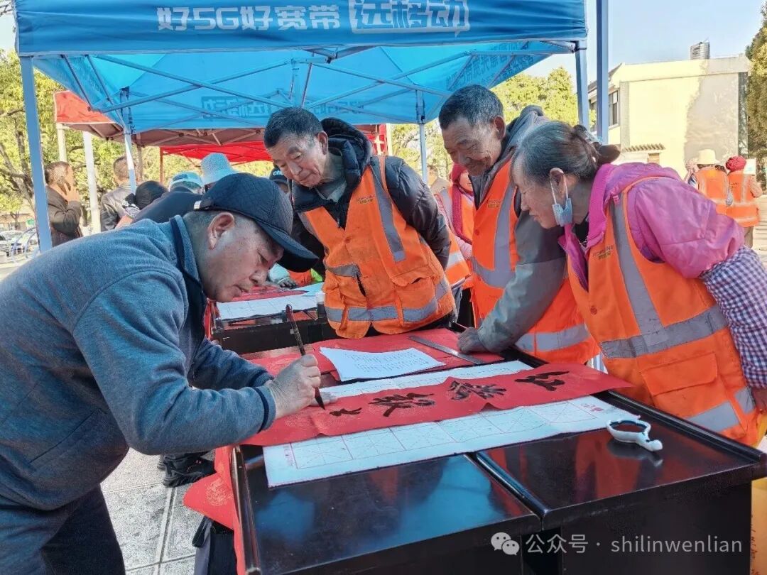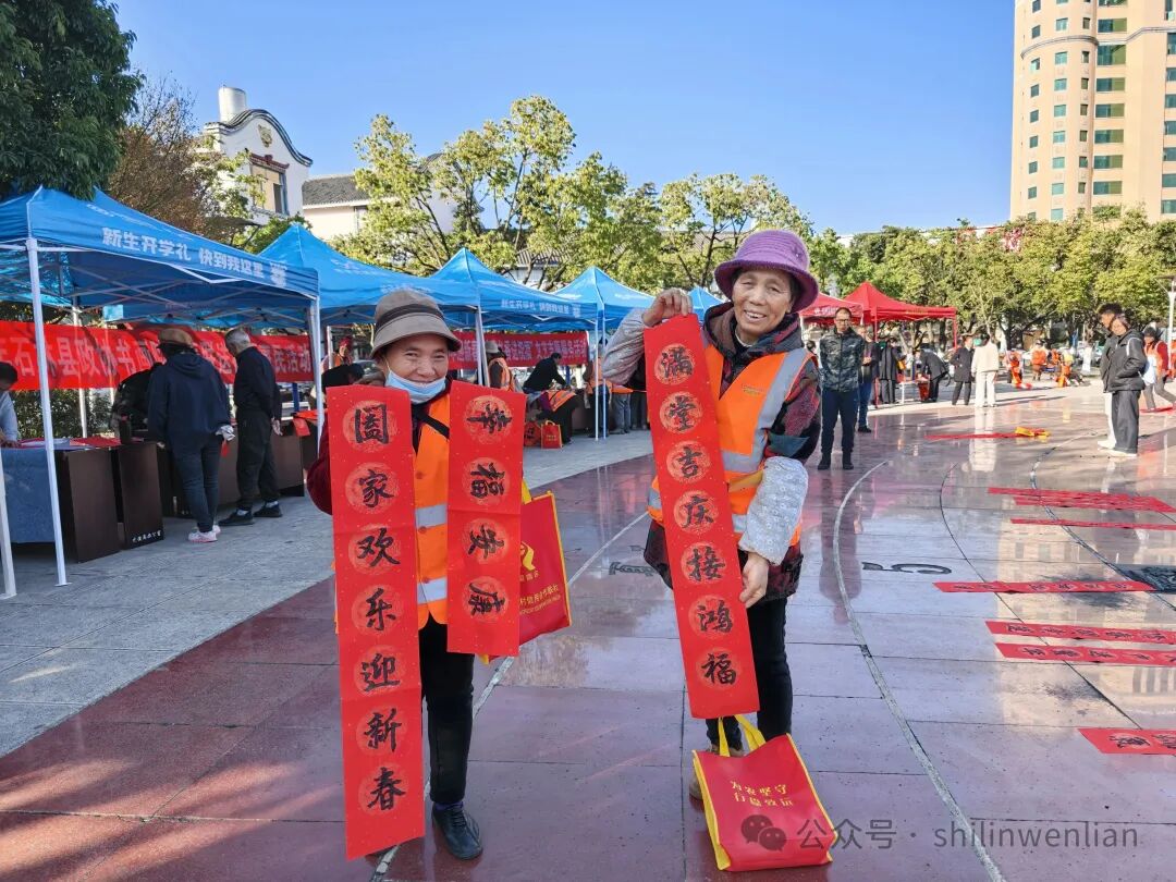 日前,石林县文联、县委文明办、县政协书画院、县综合行政执法局、县信用社、县书法协会等单位联合在民族团结广场,开展2026年迎新春“翰墨书香送祝福”文艺志愿服务活动,为坚守一线的环卫工人送上新春祝福与文化关怀,书写赠送春联和福字。现场还设有金融知识普及环节,县信用社的工作人员以案说险,讲解非法集资与电信诈骗陷阱,解答储蓄、防诈、社保卡使用等疑问,为群众财产安全添保障。此次活动以翰墨传情,既送上年味与祝福,更传递了对“城市美容师”的敬意。