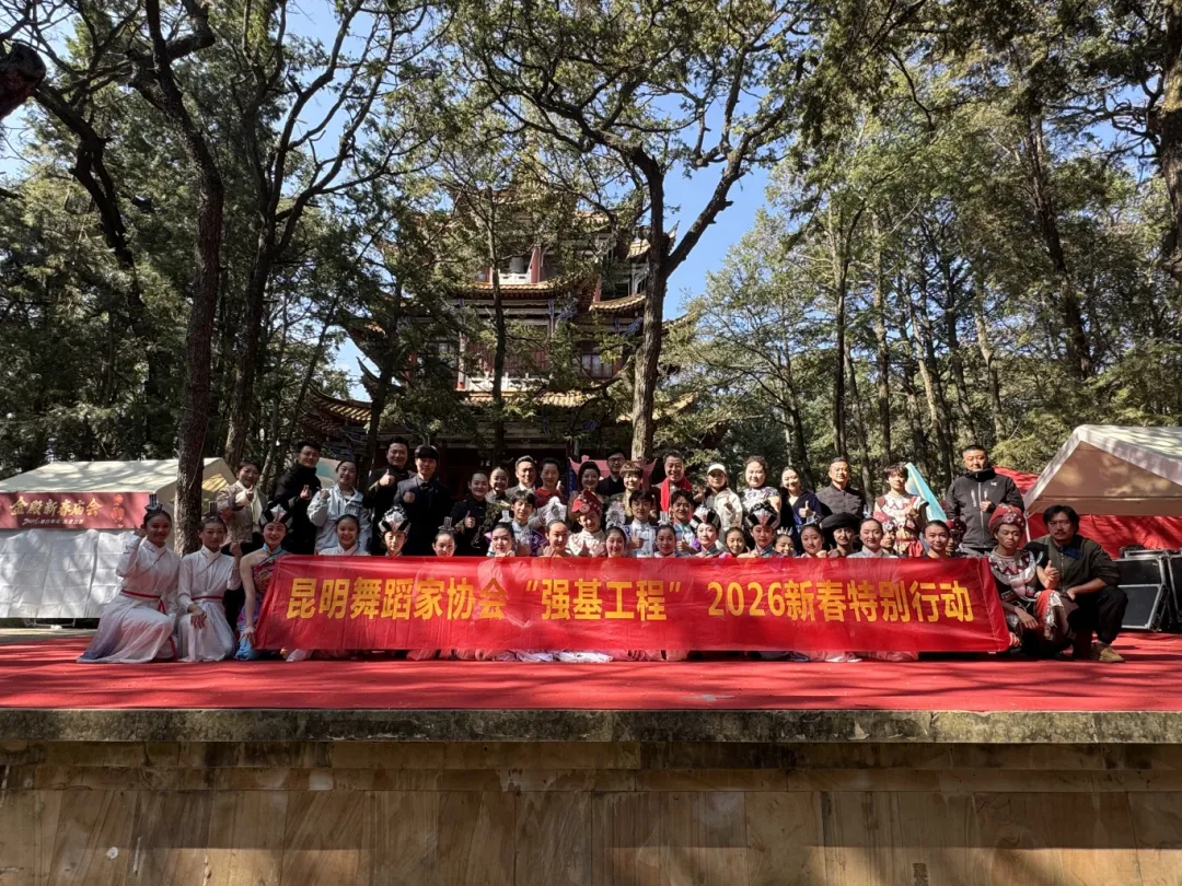 春节期间,昆明舞蹈家协会积极参与昆明市文旅宣传活动,分别在斗南花里公园、海埂大坝、金殿、大观公园等地带来精彩演出,让市民和游客在舞步中感受节日氛围。