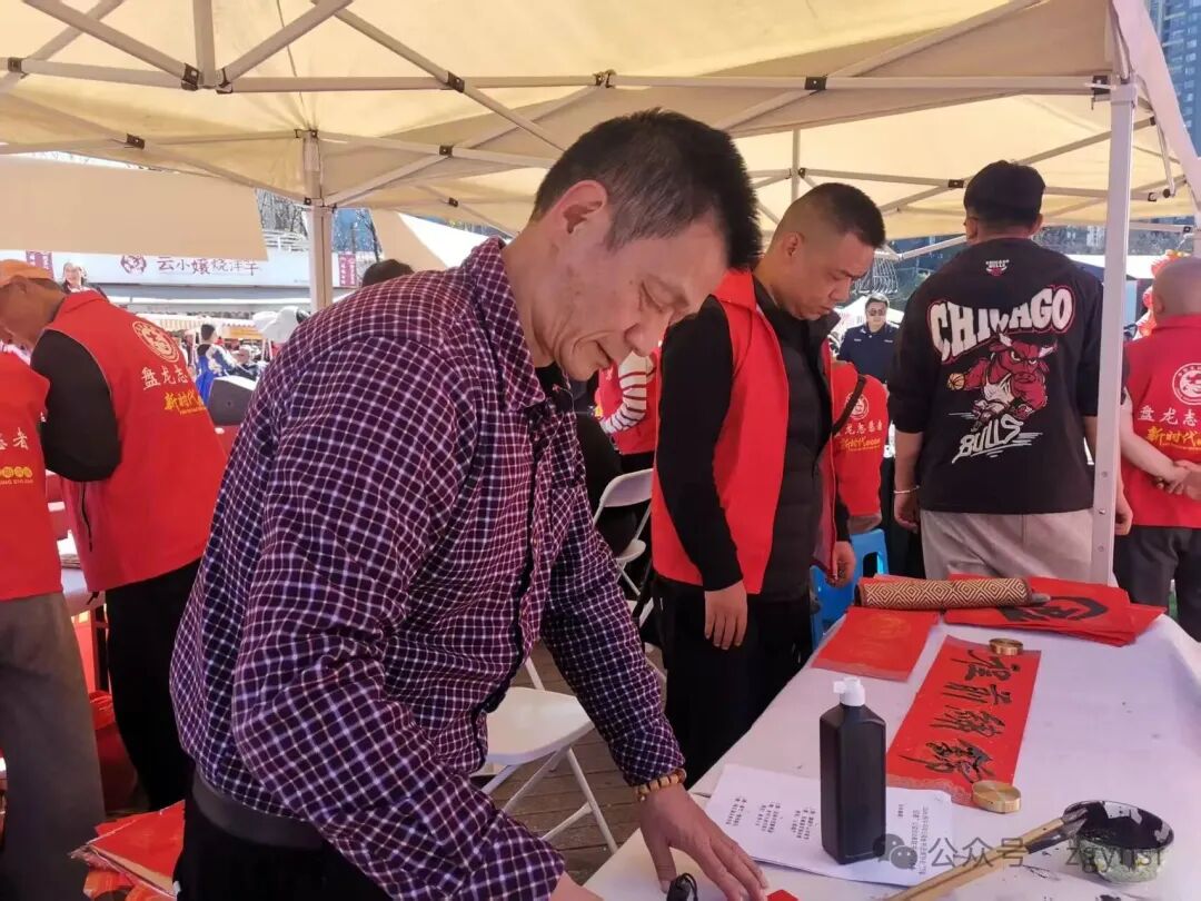盘龙区书法家协会书法家们现场挥毫泼墨,为居民书写寓意吉祥的春联和“福”字。“龙年纳福家家乐,春到人间处处新”“五谷丰登辞旧岁,六畜兴旺迎新春”等一幅幅饱含年味的作品,不仅传递了节日祝福,更让居民感受到传统文化的魅力。活动现场共送出春联300余副、“福”字500余个,社区居民纷纷排队领取,脸上洋溢着喜悦。