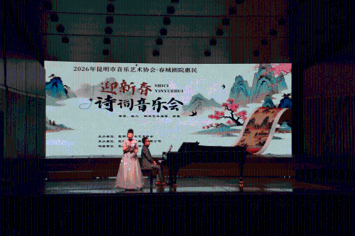 为丰富基层群众节日文艺生活,传承中华优秀传统文化,2月28日晚,由昆明市音乐艺术协会主办、春城剧院承办、昆明聂耳交响乐团特别支持的惠民迎新春诗词音乐会在春城剧院开演。本场音乐会选址在800人规模的剧场,民族唱法与美声类表演全程摒弃电子扩音设备,以最本真的舞台原声呈现艺术魅力,将中华经典诗词与现代音乐完美融合,让艺术回归舞台本身,为昆明市民献上了一场兼具文化底蕴与艺术美感的惠民视听盛宴,用雅乐致敬时代,以诗情温暖新春。