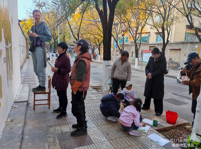 这组彩绘由五华区文明办、大观街道办事处、新闻里社区联合组织打造,昆明美术家协会会员杨奇威、王跃作为核心主创与志愿者及多位艺术爱好者共同完成,形成了“核心创作+志愿助力”的高效模式。