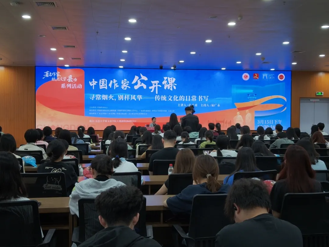 3月15日下午,中国作家公开课走进五邑大学,云南省文联兼职副主席、省作协副主席意千重应邀开讲,以“寻常烟火,别样风华——传统文化的日常书写”为主题,与校内 200余名师生共探文学创作与文化传承之道,带来一场兼具深度与温度的文学分享。