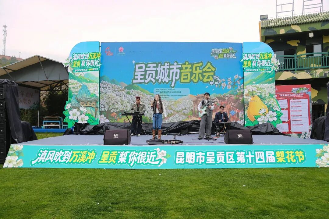 近日,作为昆明市呈贡区第十四届“万溪梨花节”的核心文化板块之一的“呈贡城市音乐会”在云南果逸花谷宝珠梨文化旅游区的主舞台浪漫开唱。在如云似雪的梨花背景下,摇滚的激情与民谣的温情交替上演,为市民和游客送上了一场沉浸于自然之中的艺术盛宴。