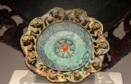西汉 鎏金八人乐舞铜扣饰 云南省博物馆藏