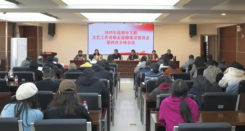 12月29日下午,昆明市文联文艺工作者职业道德建设委员会第四次全体会议召开。会议深入学习贯彻党的二十大及二十届历次全会精神和习近平文化思想,全面总结2025年工作,部署2026年重点任务,凝聚行业共识,为昆明文艺事业高质量发展筑牢道德根基。